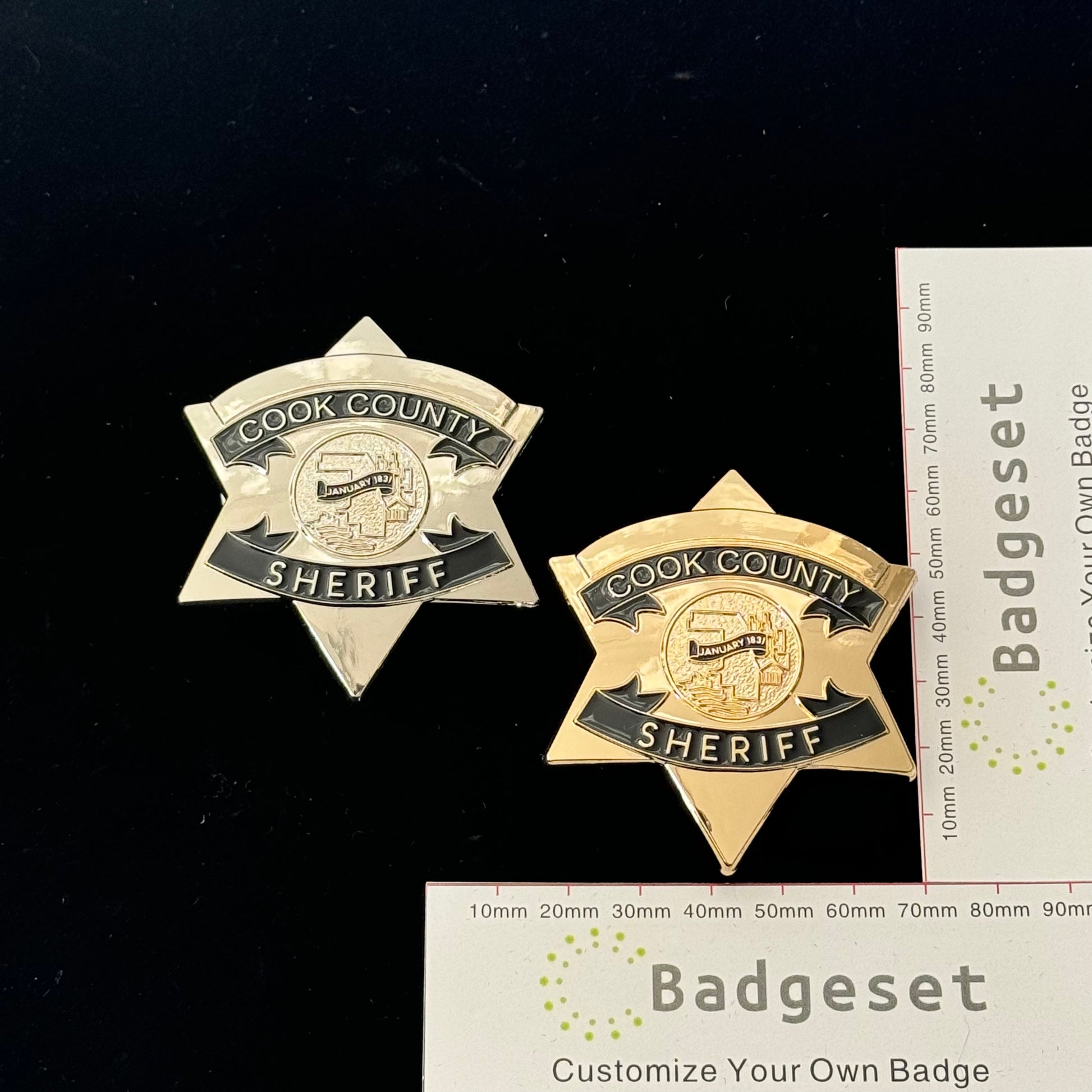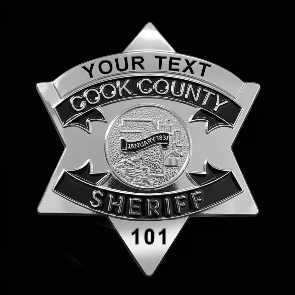 Distintivo d'oro con stella dello sceriffo della contea di Cook CCSO, numero personalizzabile, oggetti di scena per film