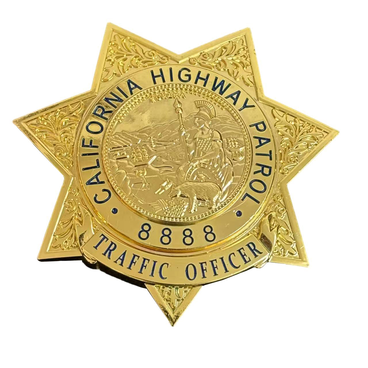 - Il distintivo presenta un design che rappresenta l'autorità e la dedizione della California Highway Patrol, con emblemi e insegne che simboleggiano il ruolo degli agenti della strada nel mantenimento della sicurezza stradale.